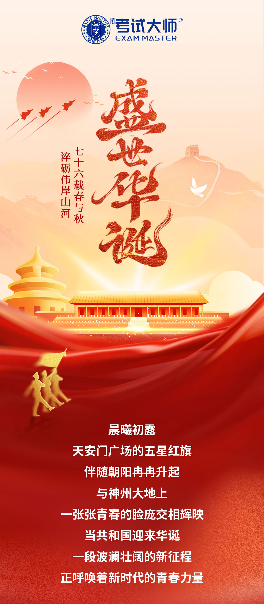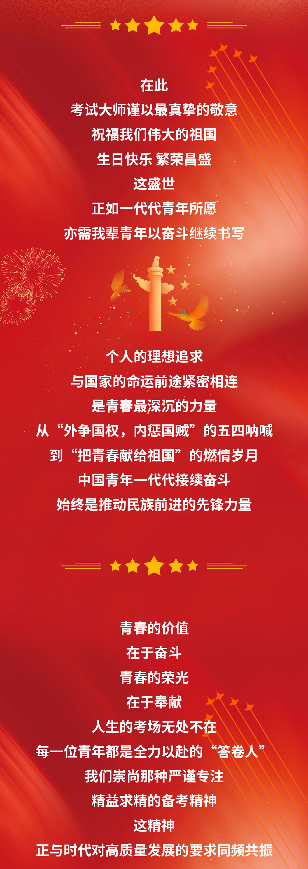 考试大师青春奋斗献礼华诞,强国有我共赴新程