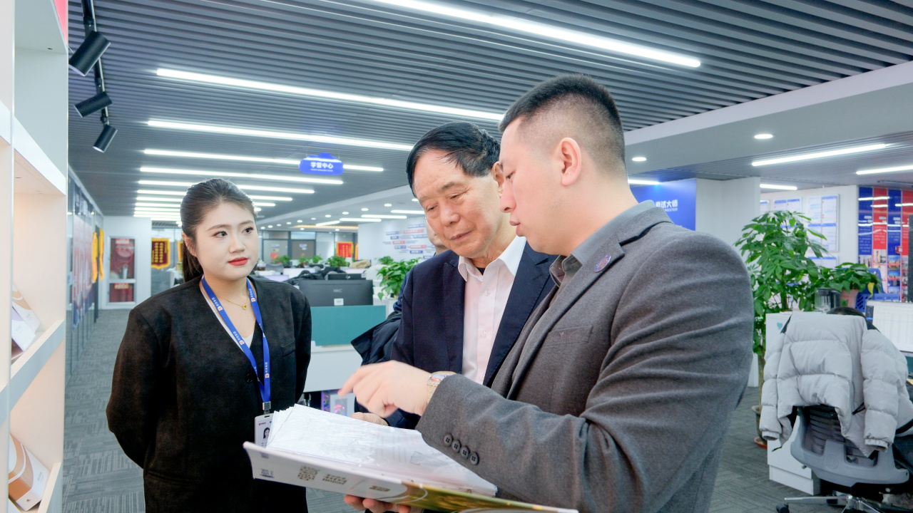 在考试大师高管的陪同下,陶继新教授参观了位于济南的公司总部,亲身体验了企业的日常运营环境与团队风貌。在参观过程中,陶教授详细了解了考试大师“让考试更简单,让人生更清晰”的企业使命如何贯穿于从研发到服务的每一个环节。