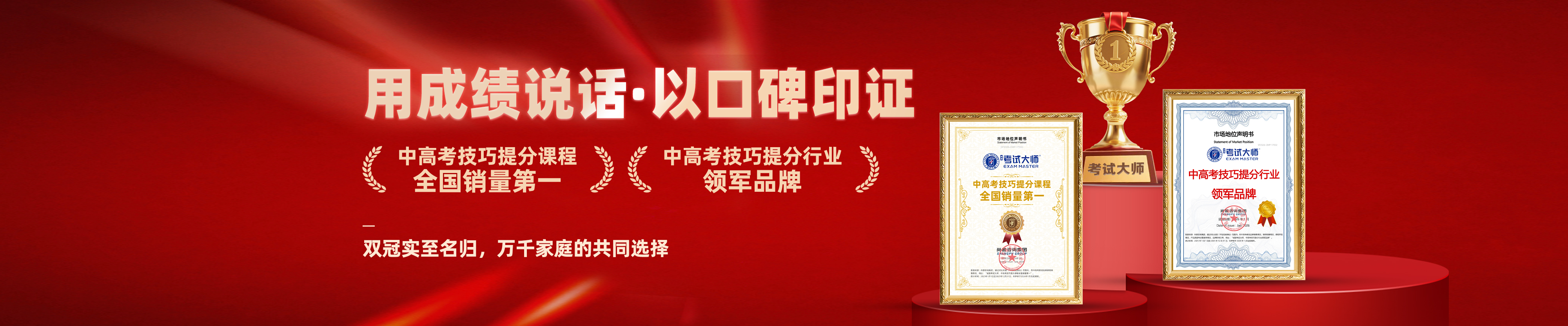 近日,中高考教培领域传来重要消息:考试大师凭借其课程实效转化的领先销量与深入的市场认可,正式获得尚普咨询集团颁发的 “中高考技巧提分课程全国销量第一” 权威认证。这一荣誉不仅是市场选择的直接体现,更标志着考试大师在行业内的领先地位已获得专业机构与用户口碑的双重确认,成为中高考备考领域具有标杆意义的品牌。