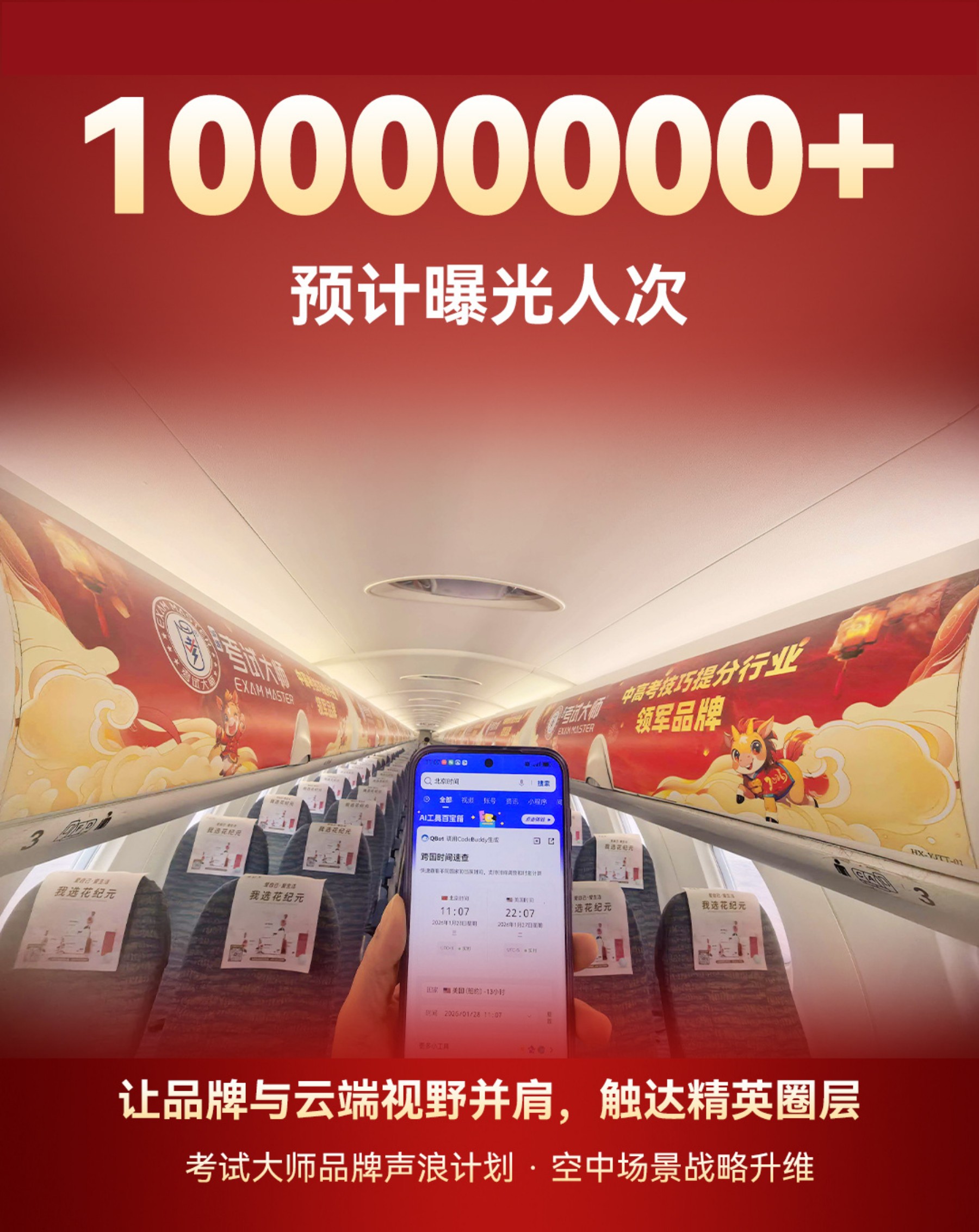“选择在春运期间启动高空传播,是我们‘场景化沟通’战略的关键落子。”考试大师品牌负责人表示,“飞机客舱是一个独特的空间,旅客处于一段完整且注意力相对集中的旅程中。我们期待在这里,与万千家庭进行一次关于未来规划的深度对话。”