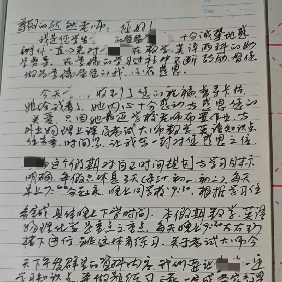 有家长发来照片:孩子迫不及待地拆开快递,信纸上的话一字一句念出声来。念完,把信折好,放进抽屉里最安全的地方。