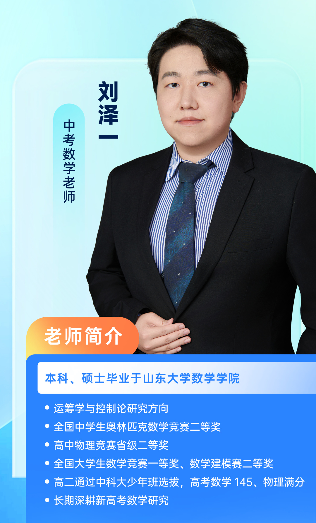 教研是提分的根,师资是提分的魂。考试大师深耕中高考技巧提升多年,始终以 “打造顶尖教研团队,用专业解决考试问题” 为核心准则。中考数学学科带头人刘泽一老师,正是这份硬核教研实力的极致体现 —— 他本科、硕士均毕业于山东大学数学学院(国内数学学科天花板之一),手握国家级竞赛大满贯荣誉,贯通初高中数学教研体系,用顶尖院校的学术训练和亲身验证的考试方法,帮无数学生走出数学学习困境,实现从基础薄弱到满分冲刺的跨越。